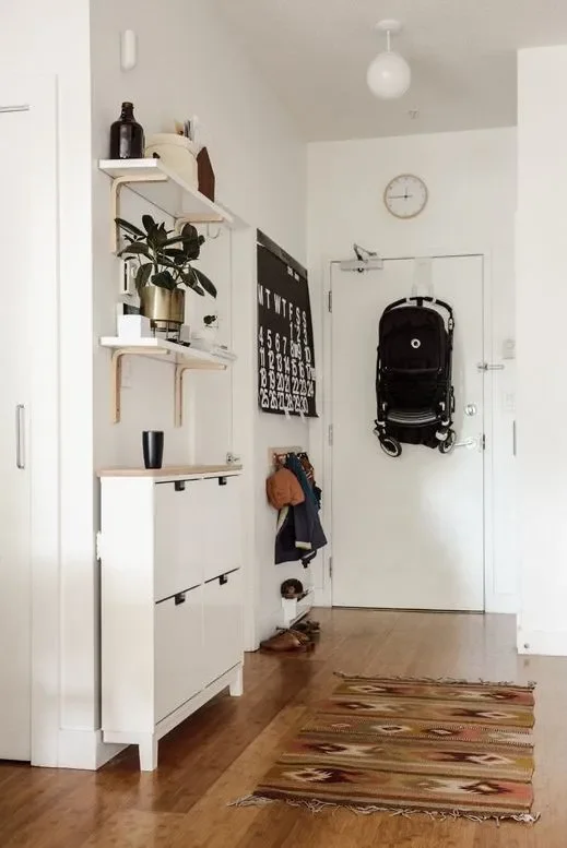 – Hooks or pegs for bags and coats.